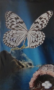 Inicialmente, a borboleta grande não fazia parte do cartão. Foi três dias após ter feito este cartão, que encontrei essa figura e quis colar na carta. Ela ficou em cima da imagem de duas borboletas pequenas que faziam parte do desenho das fases da lagarta à borboleta. Num primeiro momento fiquei em dúvida de colar a figura grande em cima das pequenas, mas senti no meu coração que esta imagem fazia parte desta carta e que era ali mesmo pra colar. Assim que colei, senti a imagem grande dizer: “Eu trago dentro de mim a vida dos que vieram antes de mim (os antepassados), dos que se entregaram para que você pudesse nascer."
